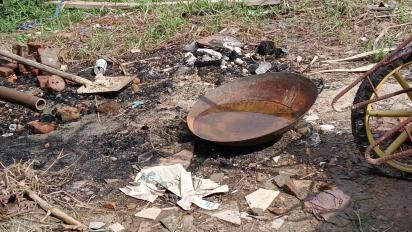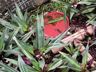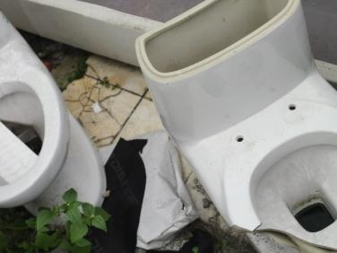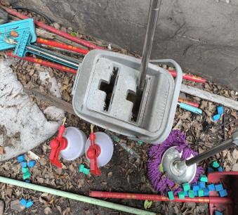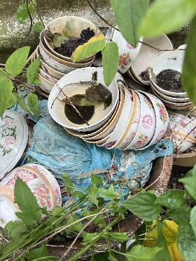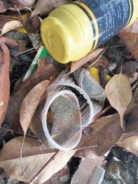 ▽草丛、花木下的塑料薄膜、瓶、盒、杯: